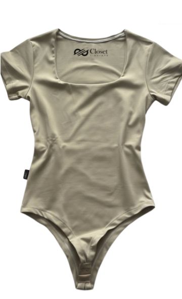 Body Poliamida Decote Quadrado Manga Curta Nude